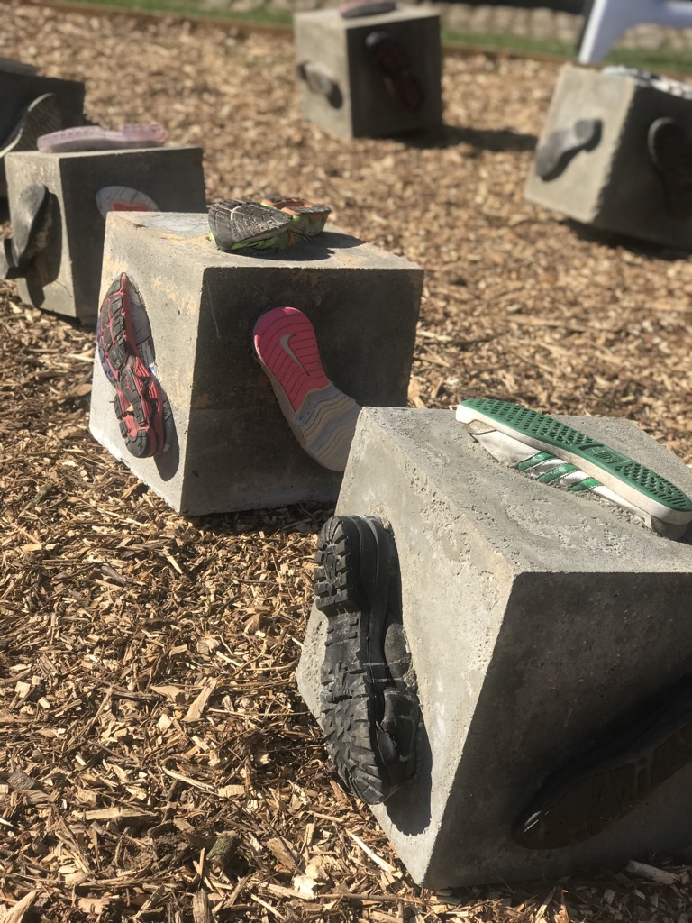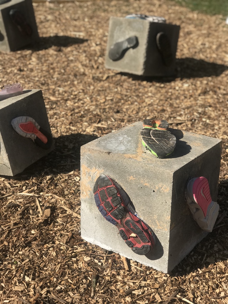 Sous-titrée « Comment faire bouger les choses« , cette série se compose de grands cubes de béton présentant sur chaque face la semelle d’une chaussure. Ces « cubes qui marchent » sont très lourds et demandent un effort pour être déplacés à la manière de ce que l’on entreprend parfois.