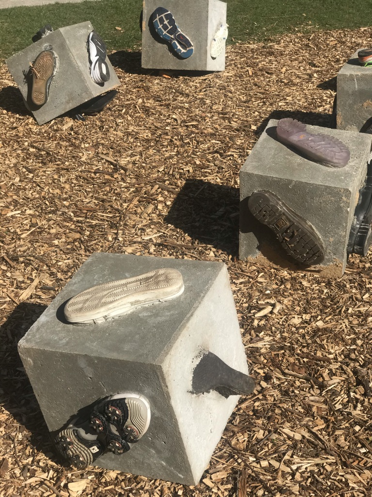 Sous-titrée « Comment faire bouger les choses« , cette série se compose de grands cubes de béton présentant sur chaque face la semelle d’une chaussure. Ces « cubes qui marchent » sont très lourds et demandent un effort pour être déplacés à la manière de ce que l’on entreprend parfois.