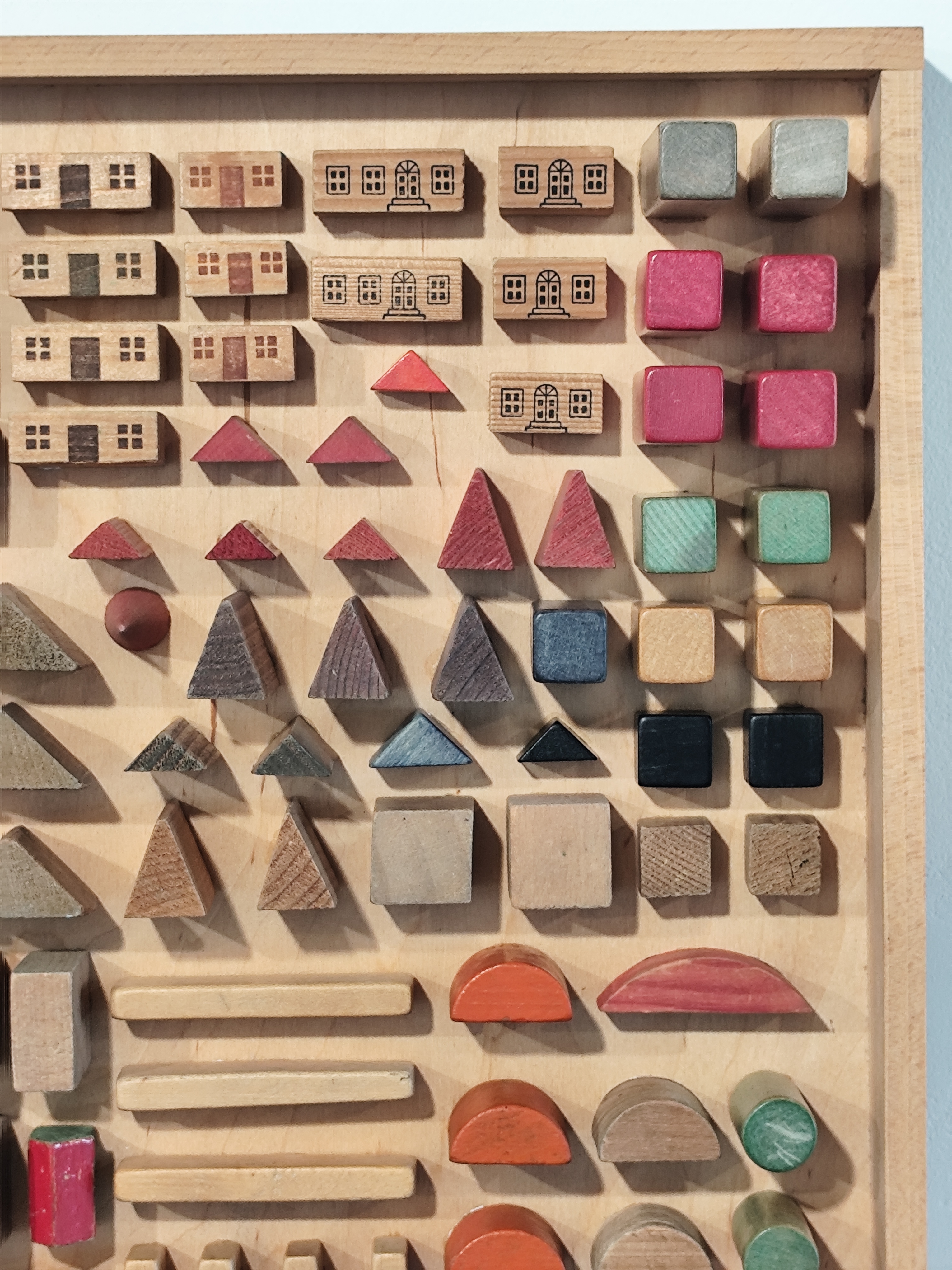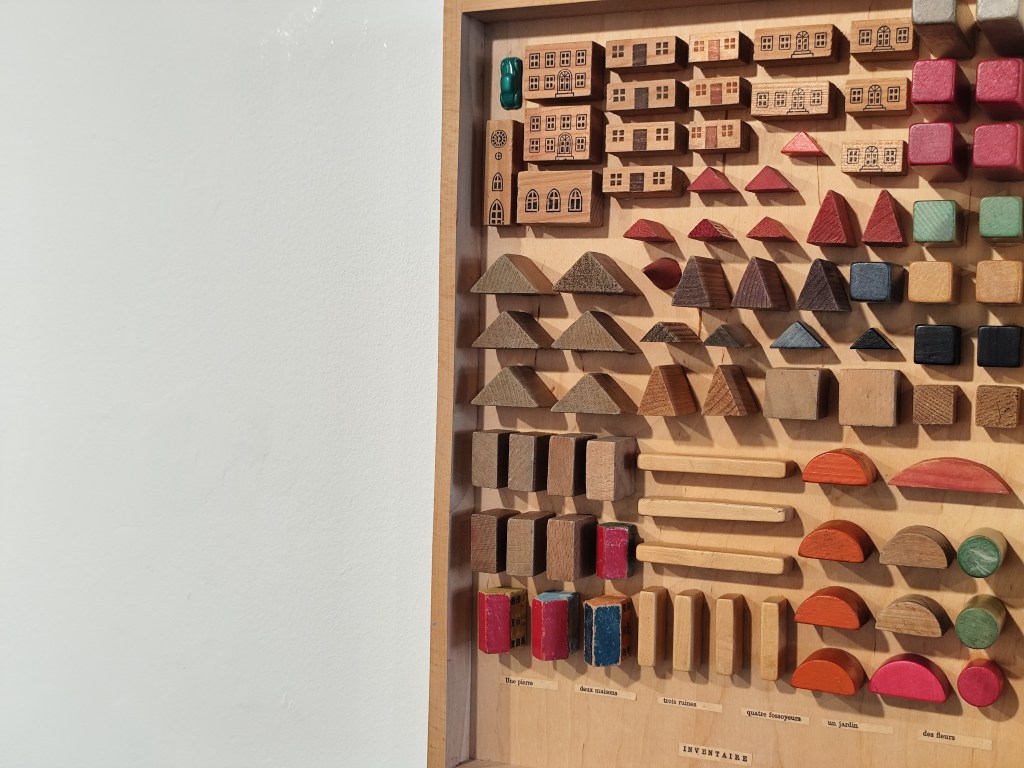 Rencontre fortuite entre un sachet de jeu pour enfants et le début d’un poème de Jacques Prévert : Une pierre, deux maisons, trois ruines, quatre fossoyeurs, un jardin, des fleurs (…)