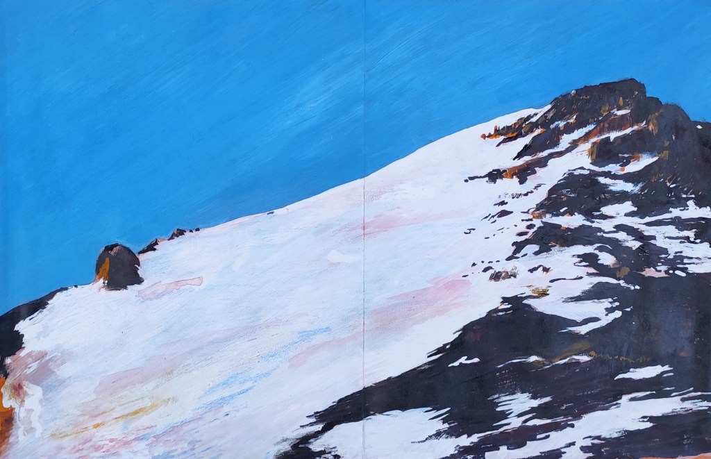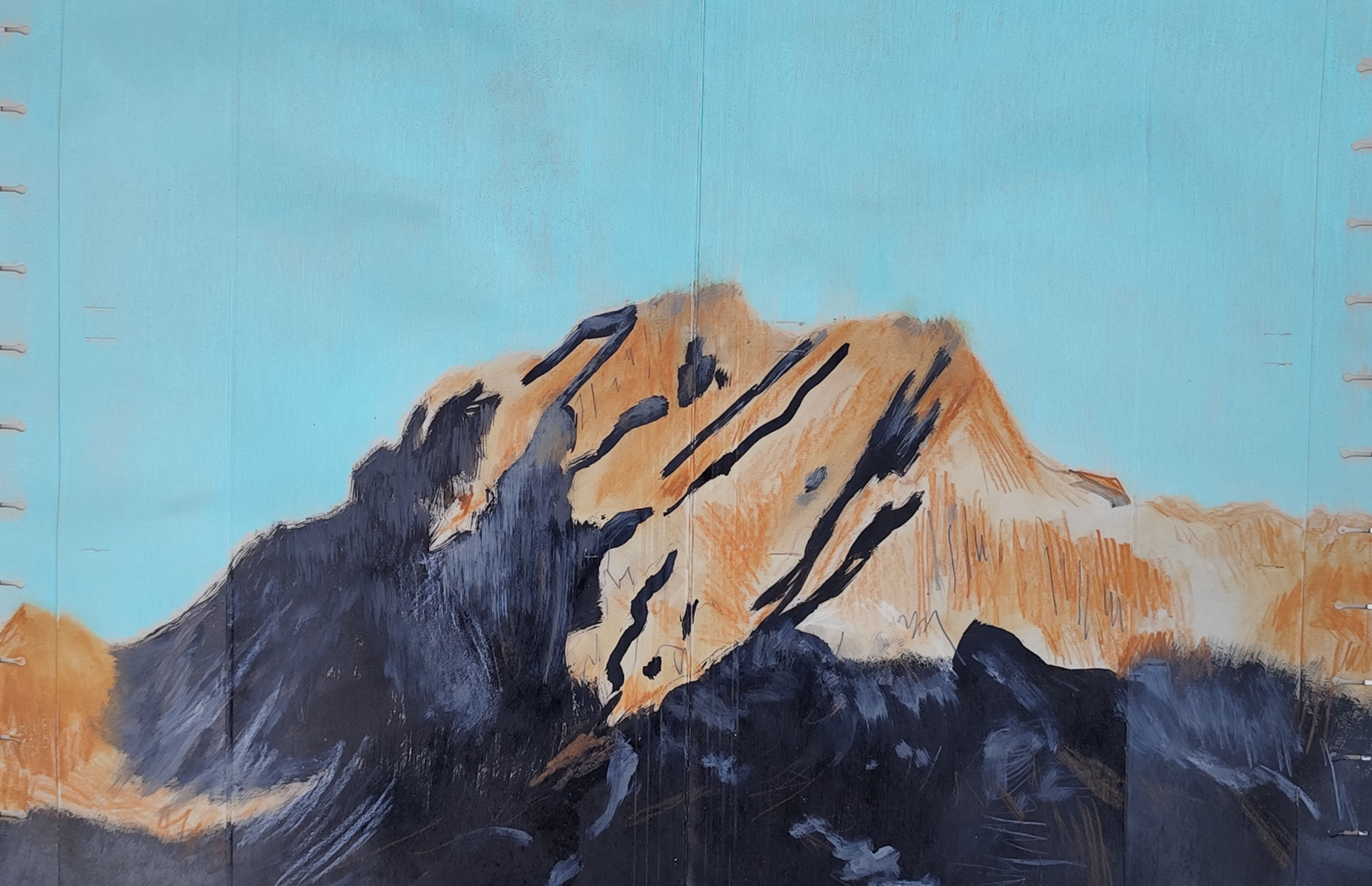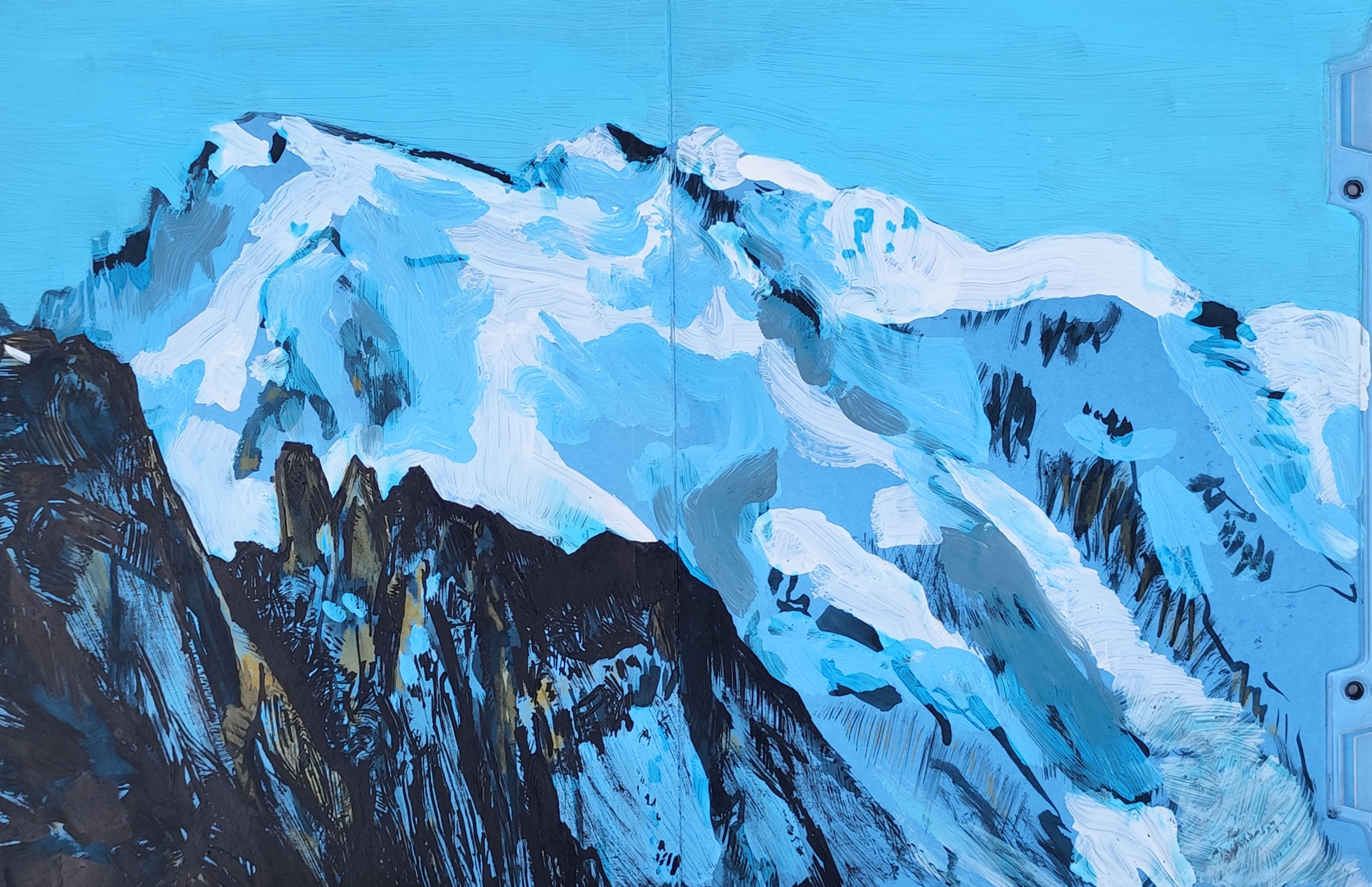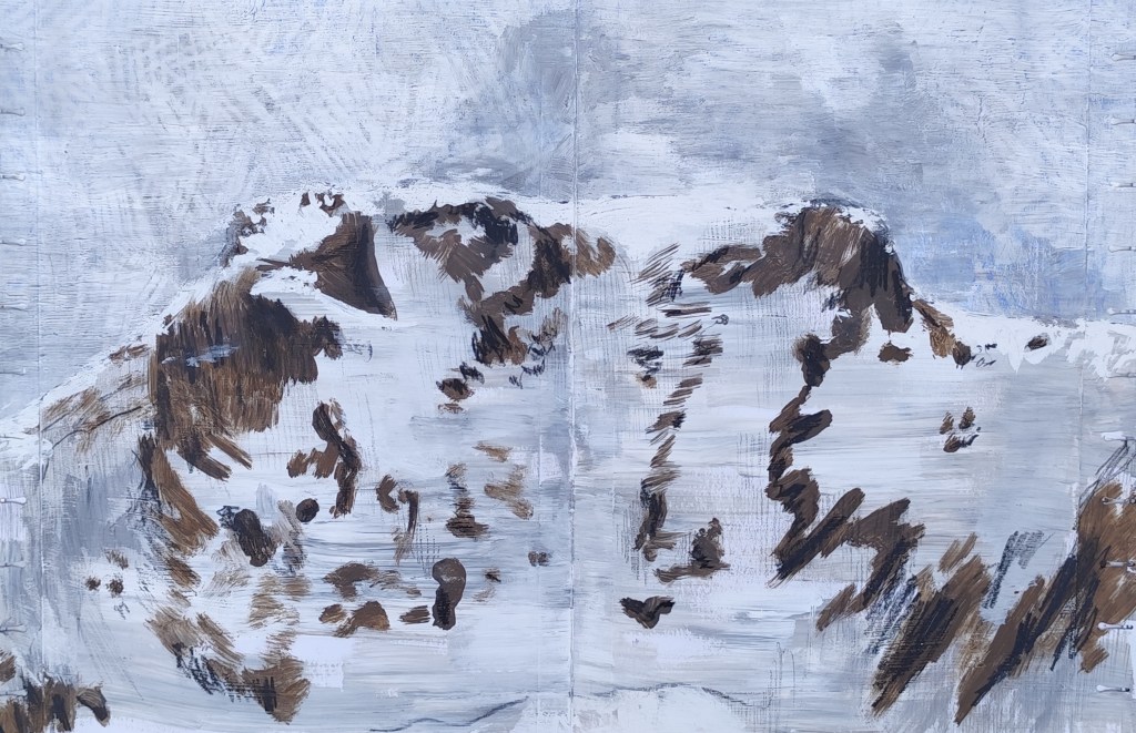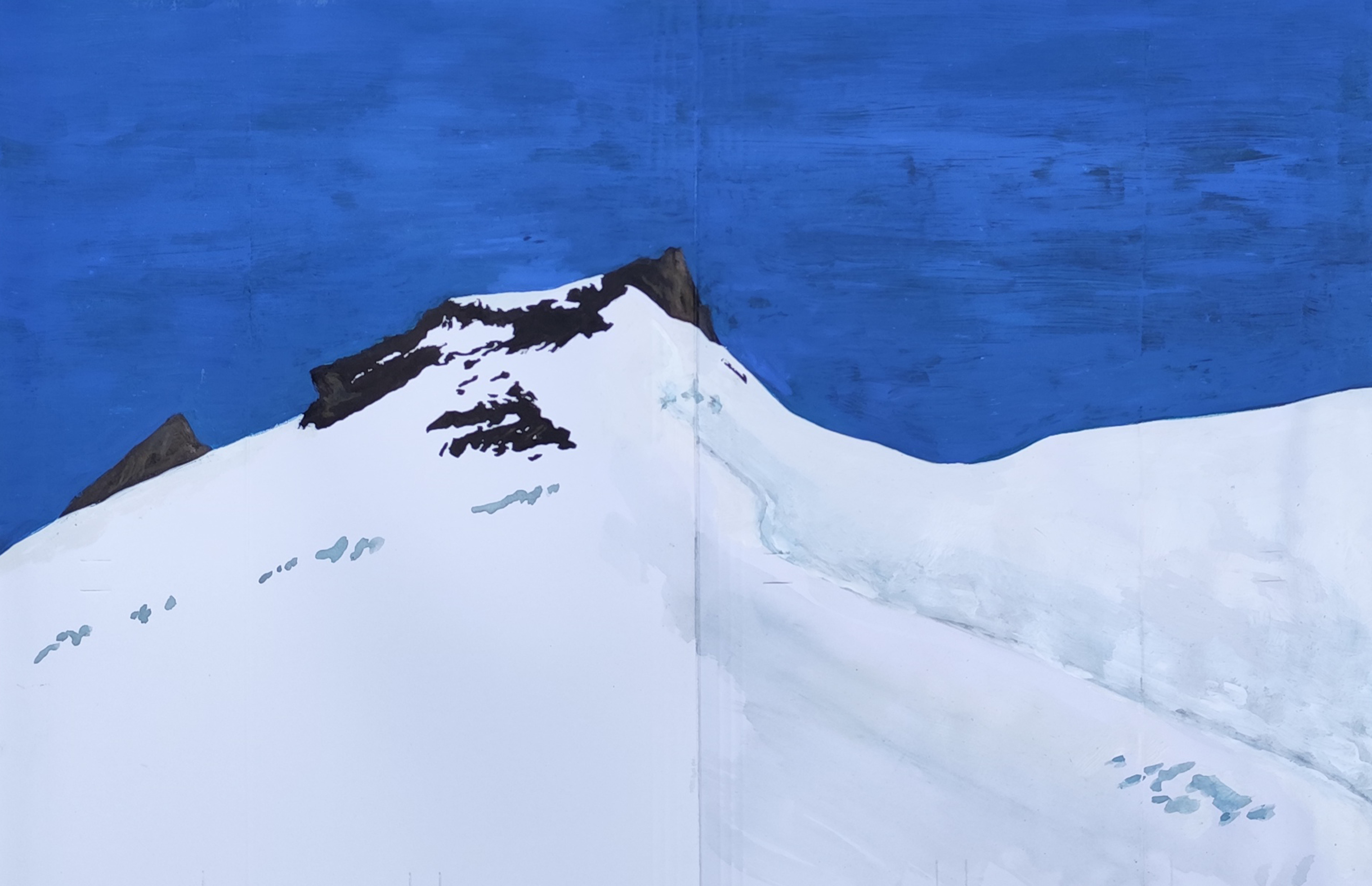 Les sommets consiste en une suite de peintures/dessins réalisés sur des fardes administratives. Les sommets montagneux évoquent notre folie des grandeurs et la recherche d’une réussite sociale. Une tentative dérisoire de faire rentrer les grands espaces dans les dimensions étriquées de quelques boites. L’exercice graphique libérateur se conjugue avec la tentative de faire «quelque chose de grand ».