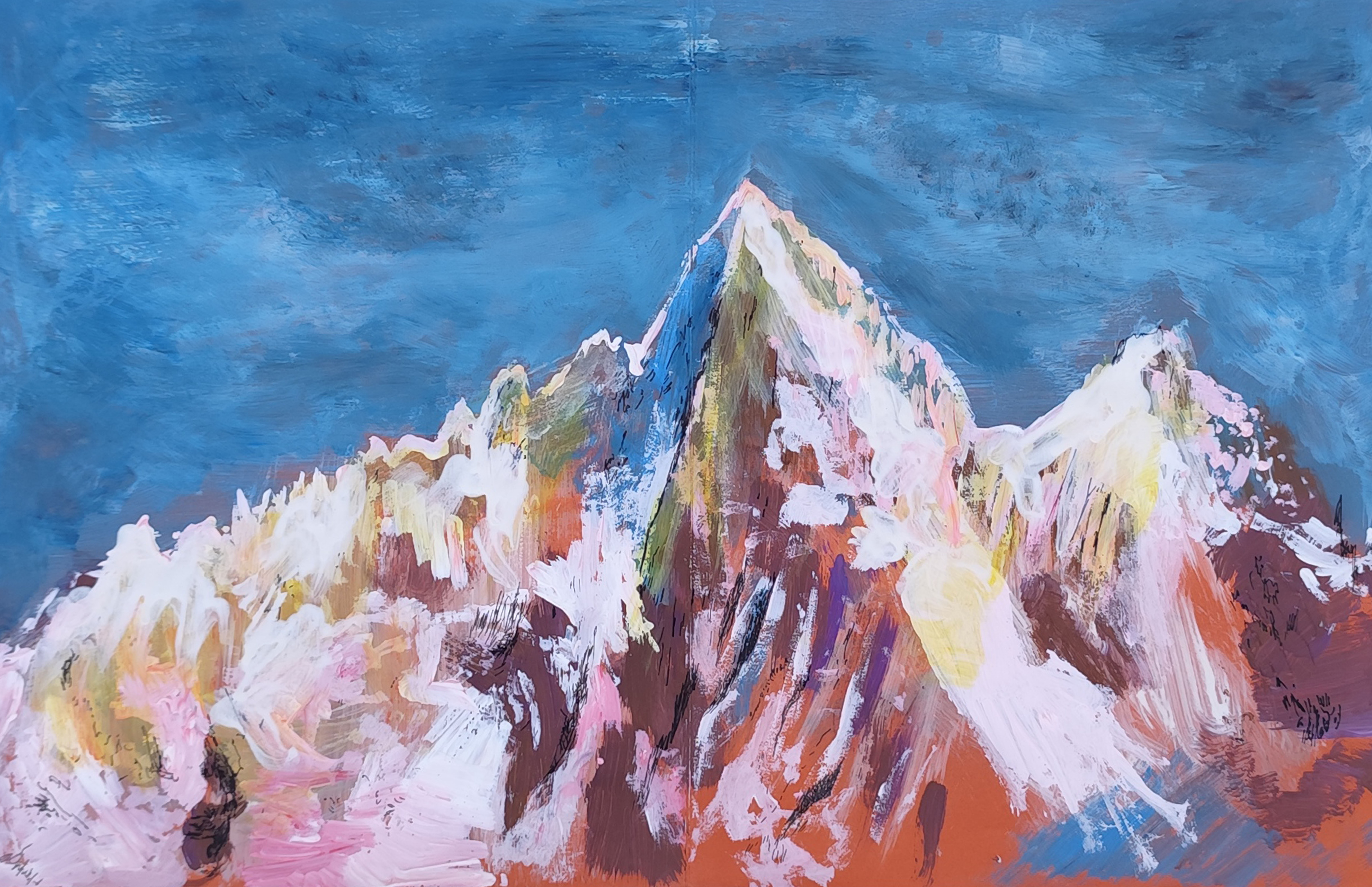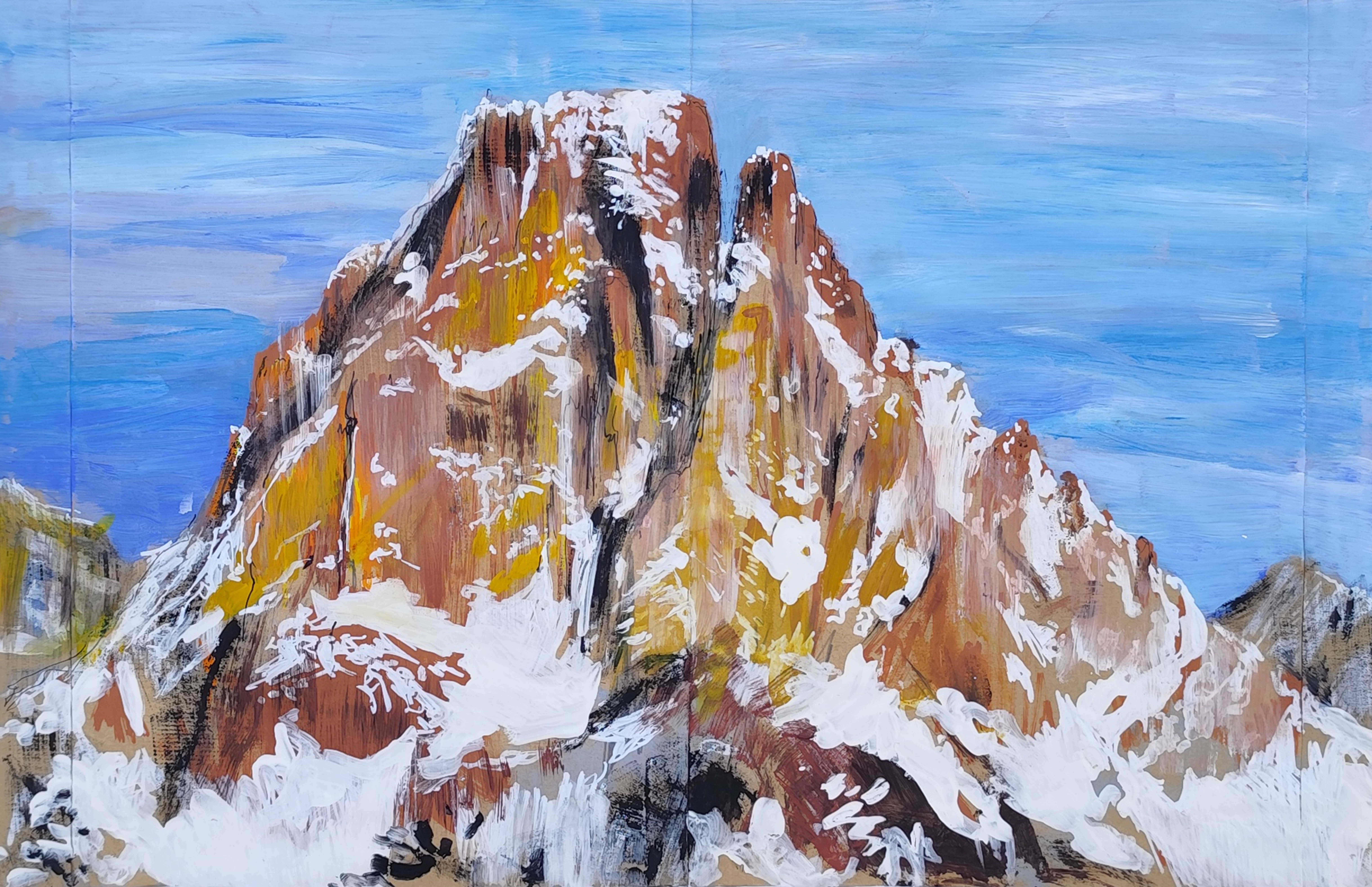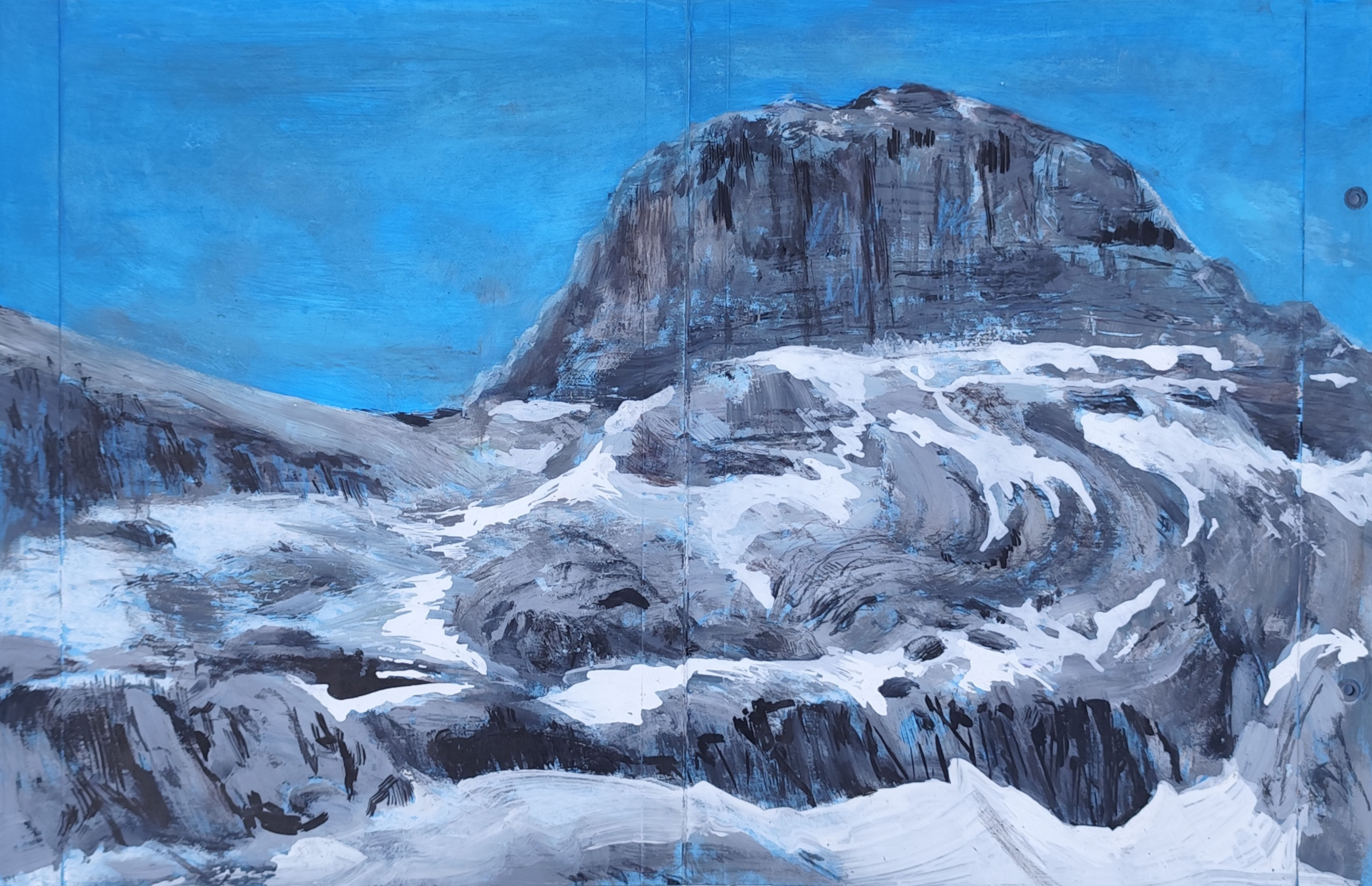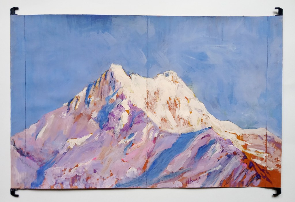 Les sommets consiste en une suite de peintures/dessins réalisés sur des fardes administratives. Les sommets montagneux évoquent notre folie des grandeurs et la recherche d’une réussite sociale. Une tentative dérisoire de faire rentrer les grands espaces dans les dimensions étriquées de quelques boites. L’exercice graphique libérateur se conjugue avec la tentative de faire «quelque chose de grand ».