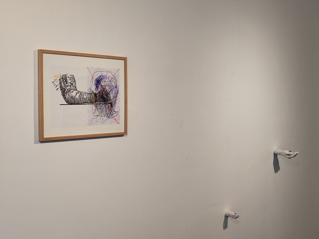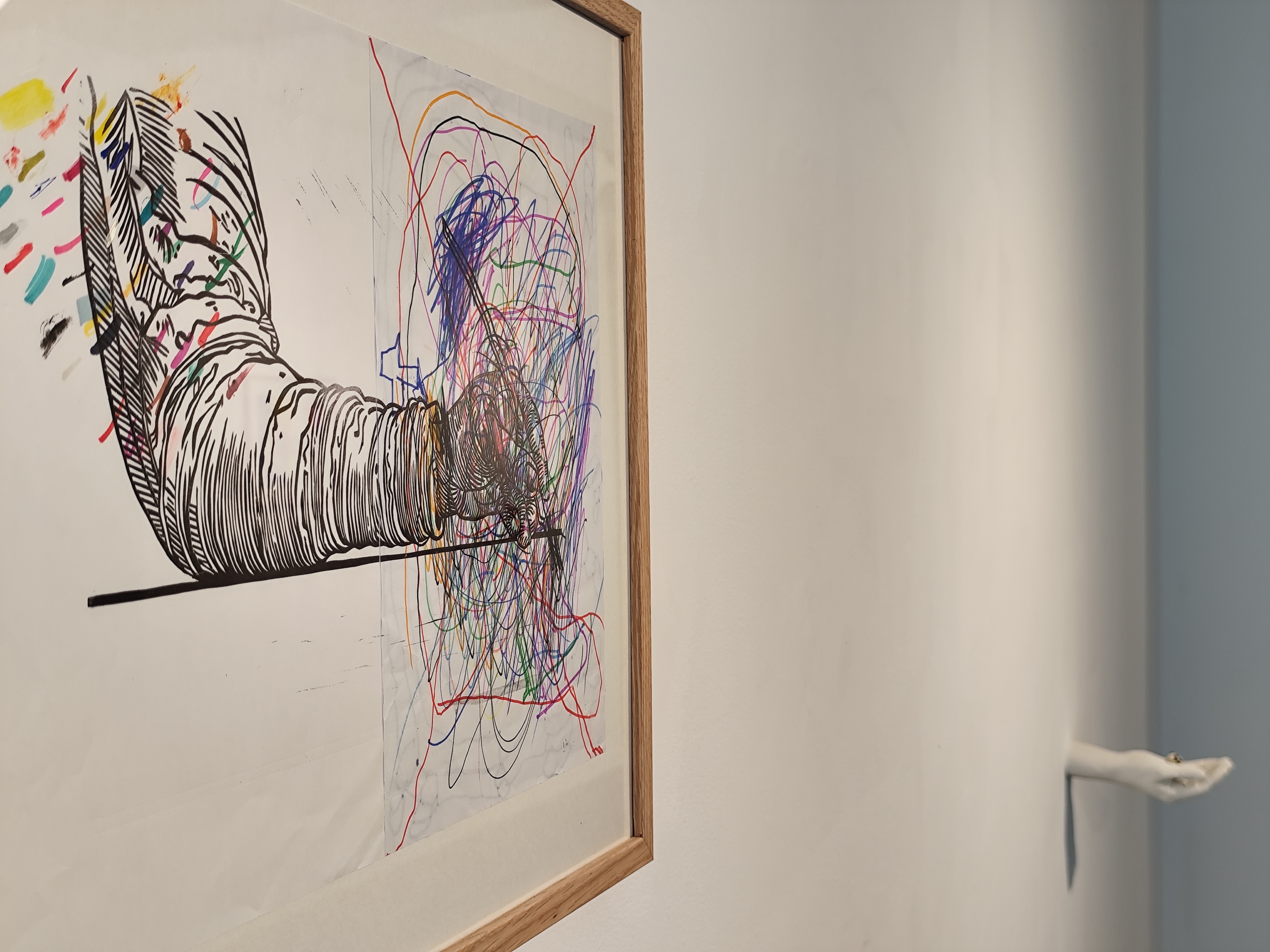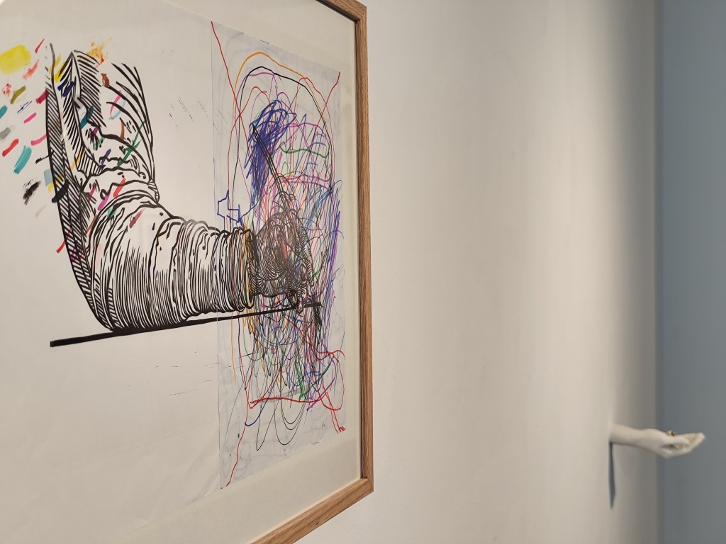 Dans cette exposition, l’enfance est envisagée comme un prisme : un regard premier, libre et expérimental qui bouscule les hiérarchies traditionnelles entre art, jeu et pédagogie. Les pièces témoignent du regard de l’artiste-parent qui fait œuvre de ces questionnements. Elles explorent notamment la valeur accordée aux images et aux objets, la maîtrise technique et la question du regard qui valide l’œuvre.