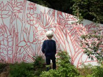 Pour In Champion 2019, Ludovic Mennesson a réalisé la fresque monumentale«Stéréographe», une jungle peinte en rouge et bleu dans laquelle on pénètre littéralement.Partant d’un tunnel piéton autoroutier dont les ouvertures évoquaient pour l’artiste deux yeux, cette fresque est un clin