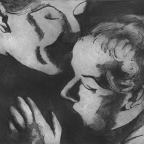 Série de 10 aquatintes sur plaques de zinc 20/20cm. Réalisées à partir des images du test psychologique Thematic Apperception Test (TAT) d’Henry Murray de 1935. L’interprétation de ces images varie selon de nombreux paramètres tels que le spectateur, l’ordre de