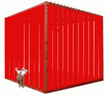 Project for a lanscape installation. A penetrable red cube made of the wood structure of a garden pergola and red plastic sheets found in industrial sheds.